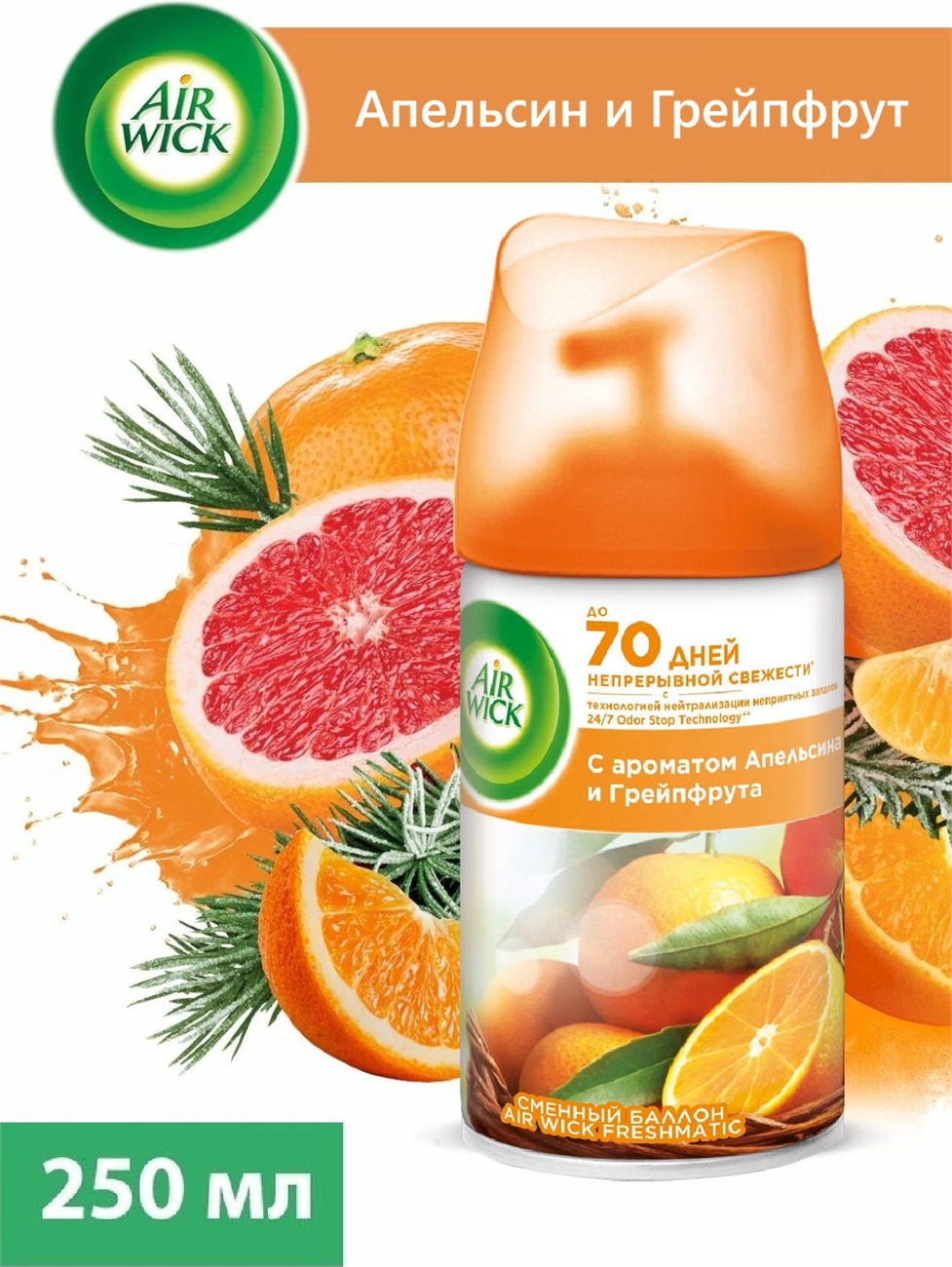 Air wick Сочный апельсин и грейпфрут освежитель воздуха сменный баллон к автоматическому распылителю освежителя воздуха серии Air Wick Freshmatic, 250 мл