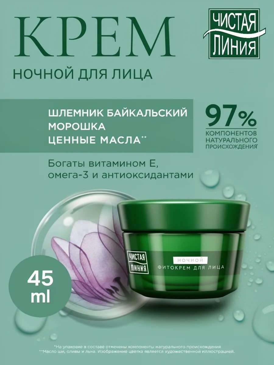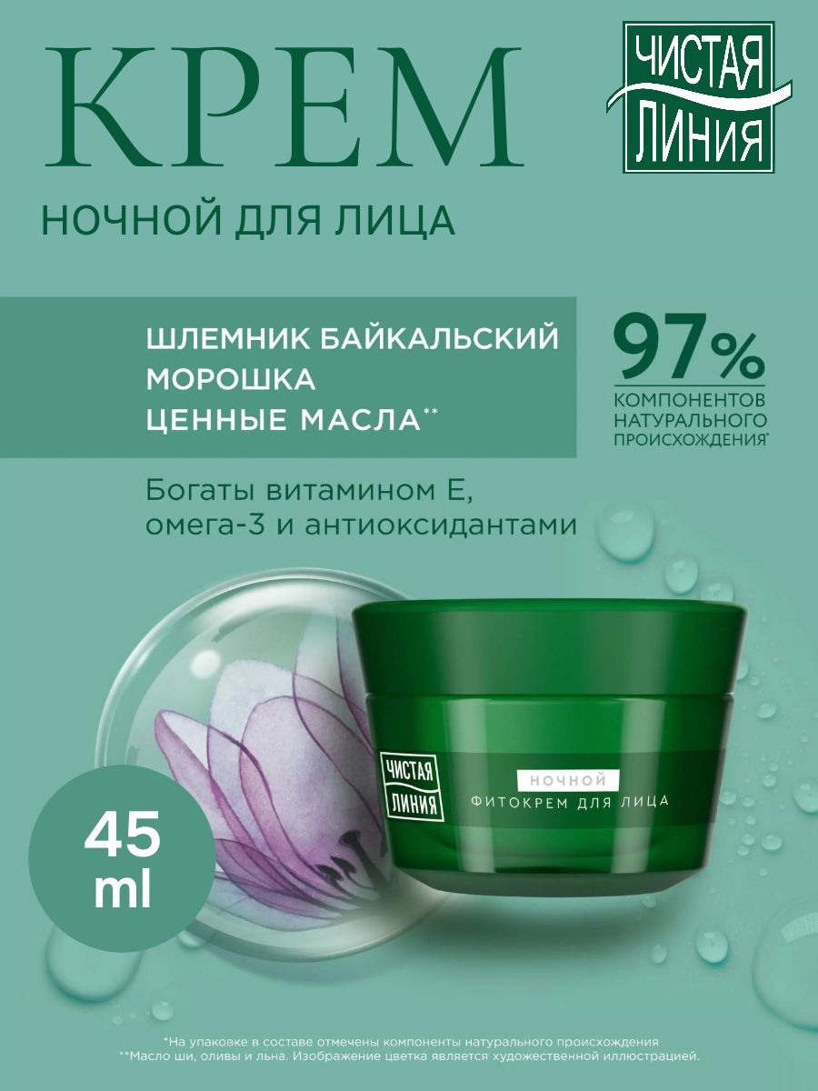Чистая линия Крем для лица ночной от 55 лет Укрепление контуров Шлемник байкальский и морошка 45 мл