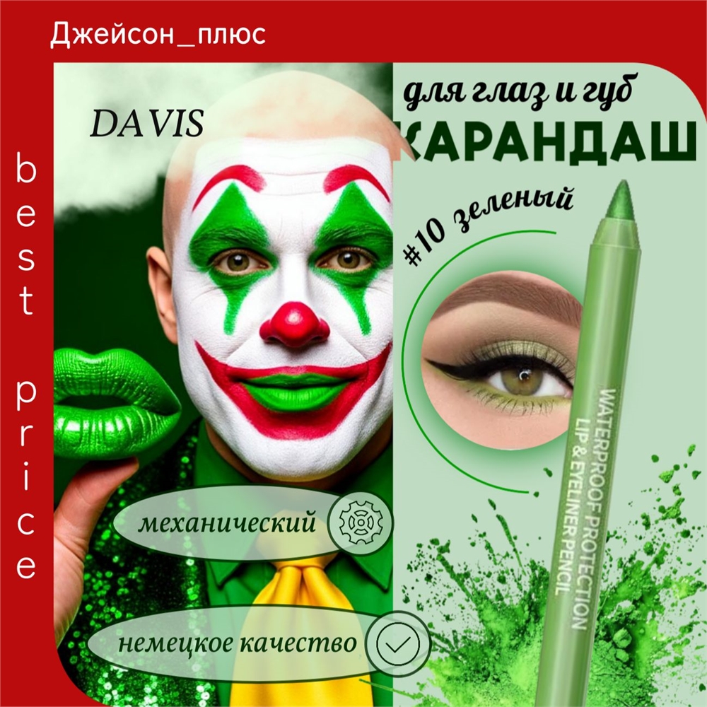 DAVIS карандаш для губ и глаз, для век механический # 10 зеленый