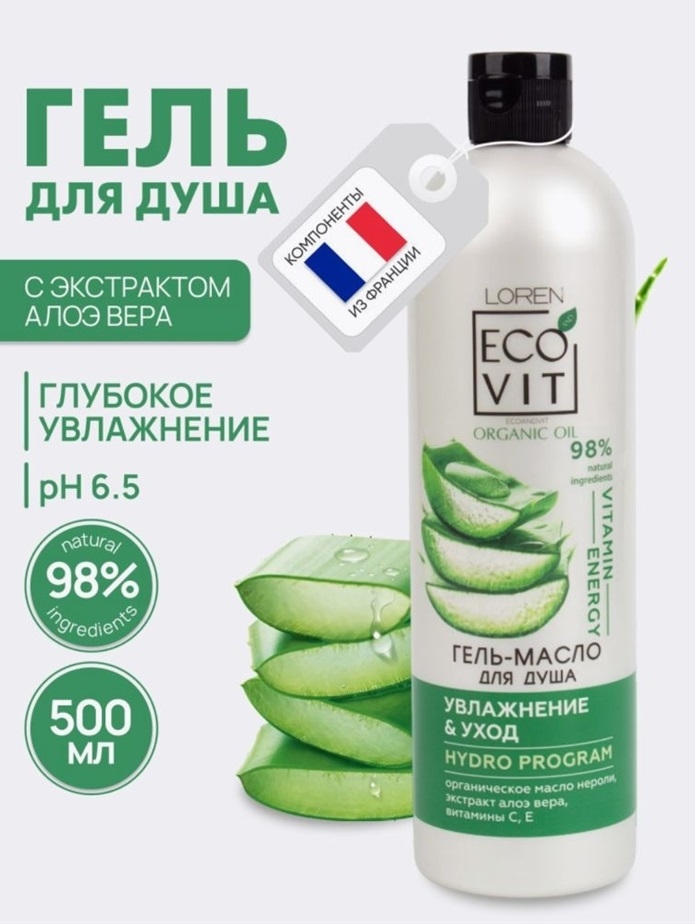 EcoVit Гель-масло для душа "Увлажнение и уход" экстракт алоэ вера 500 мл.