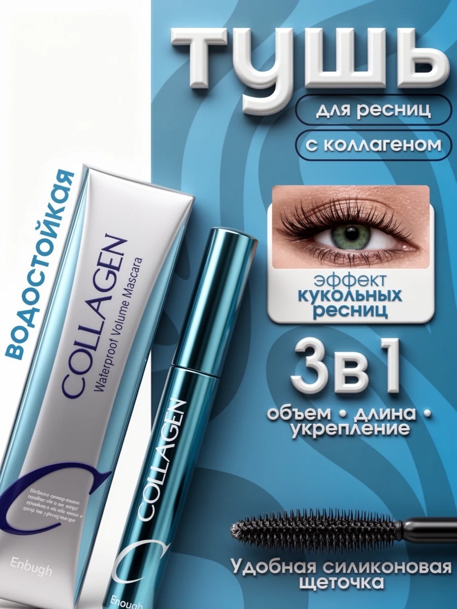 Enough тушь для ресниц COLLAGEN черная объем и удлинение