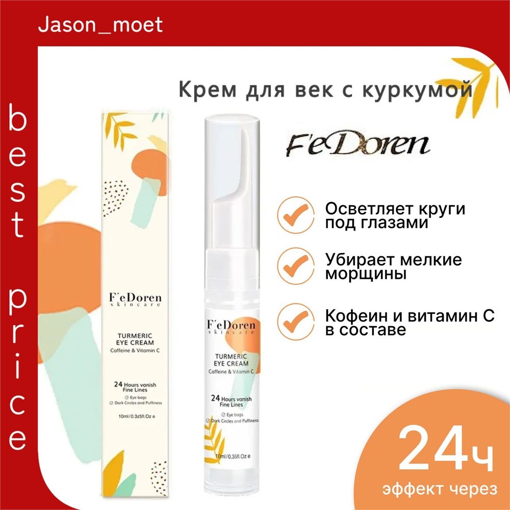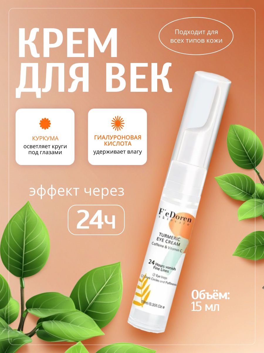 F'e Doren крем для век с куркумой и витамином С осветляющий и увлажняющий, мягкий антивозрастной и противоморщинный уход.