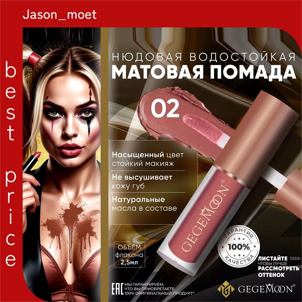 GEGEMOON помада матовая жидкая, нюдовая, водостойкая тон # 02