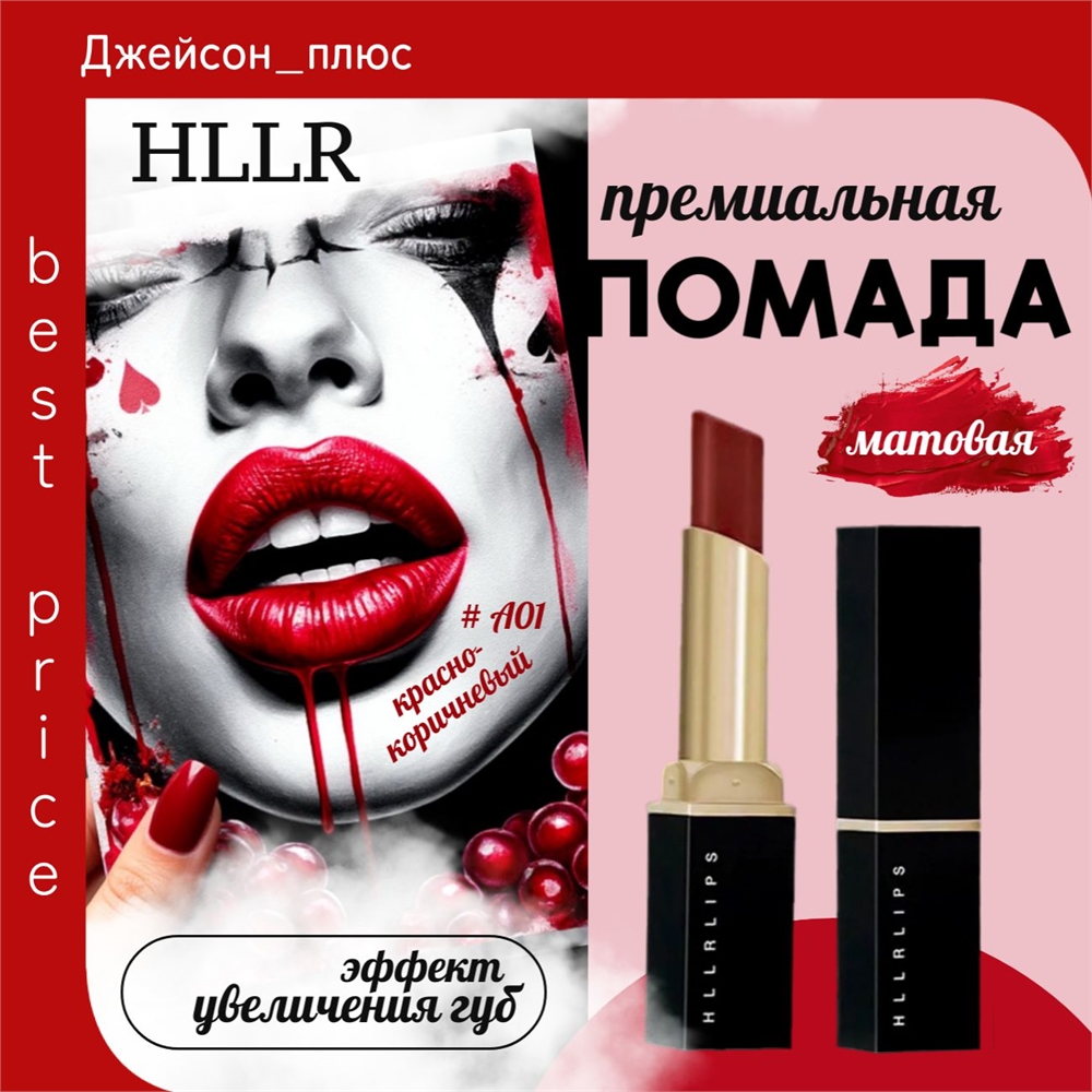 HLLR помада для губ матовая тон # А01 красно-коричневый, водостойкая, бархатная