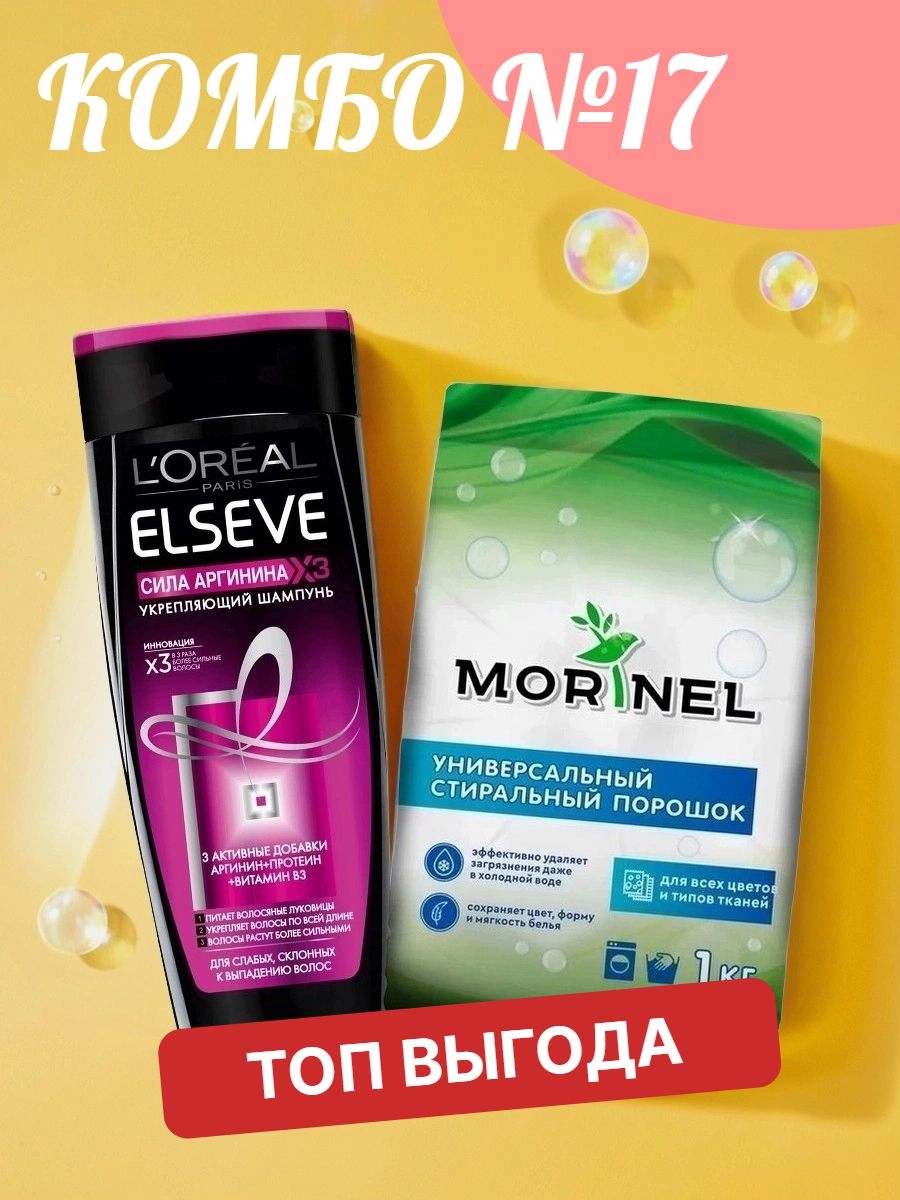 Комбо №17 Morinel ( Моринель) универсальный стиральный порошок 1000 грамм & Шампунь Elseve (Эльсеф) 250мл Сила Аргинина ХЗ