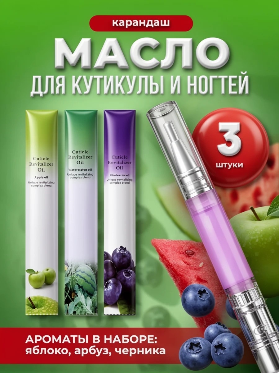 KONUCCI масло для кутикулы в карандаше (3 аромата - черника, яблоко, арбуз) 3 х 5 мл.