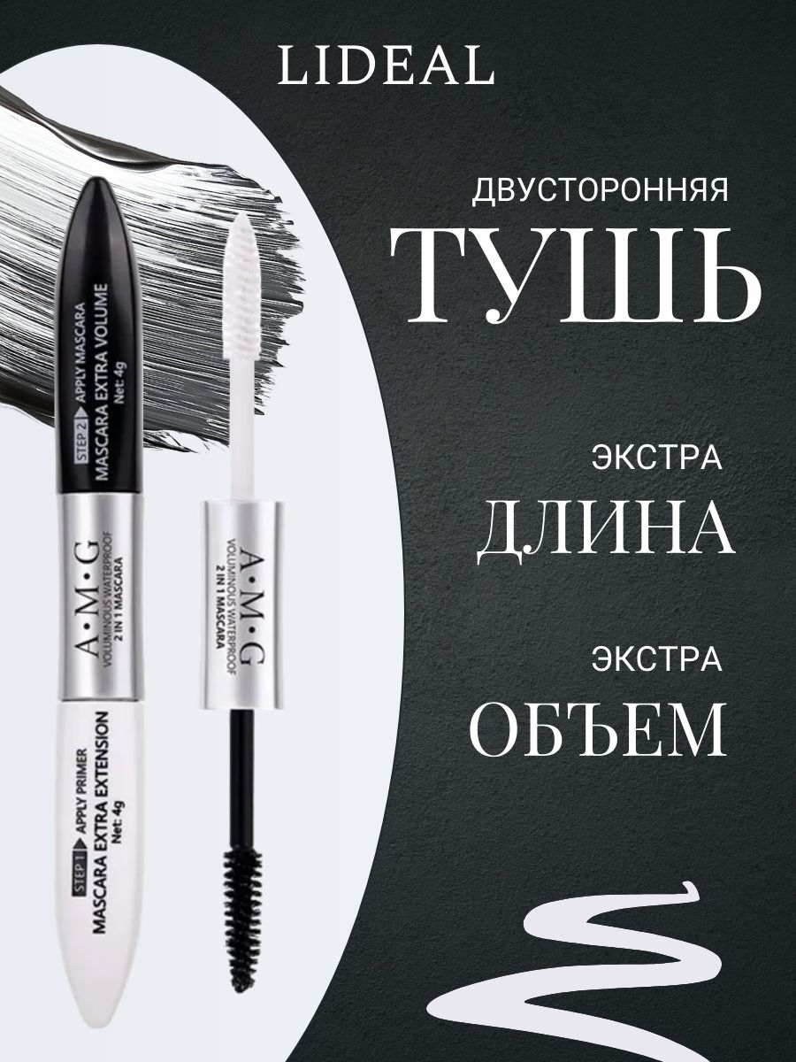 LIDEAL двусторонняя тушь для ресниц, черная тушь + белая основа, водостойкая, подкручивающая, эстра длина и экстра объем