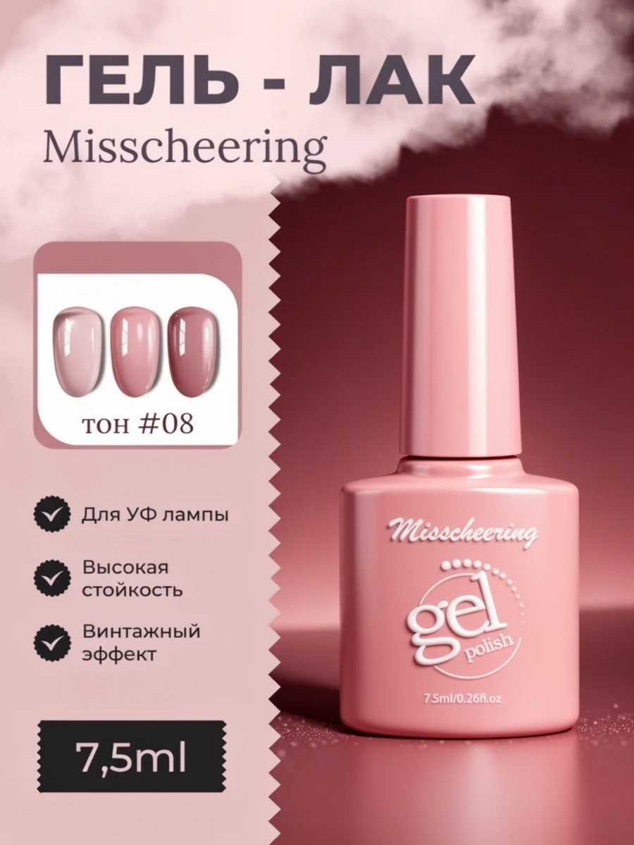 Misscheering винтажный гель лак для ногтей, 7,5мл, # 08 бордовый полупрозрачный, для УФ лампы