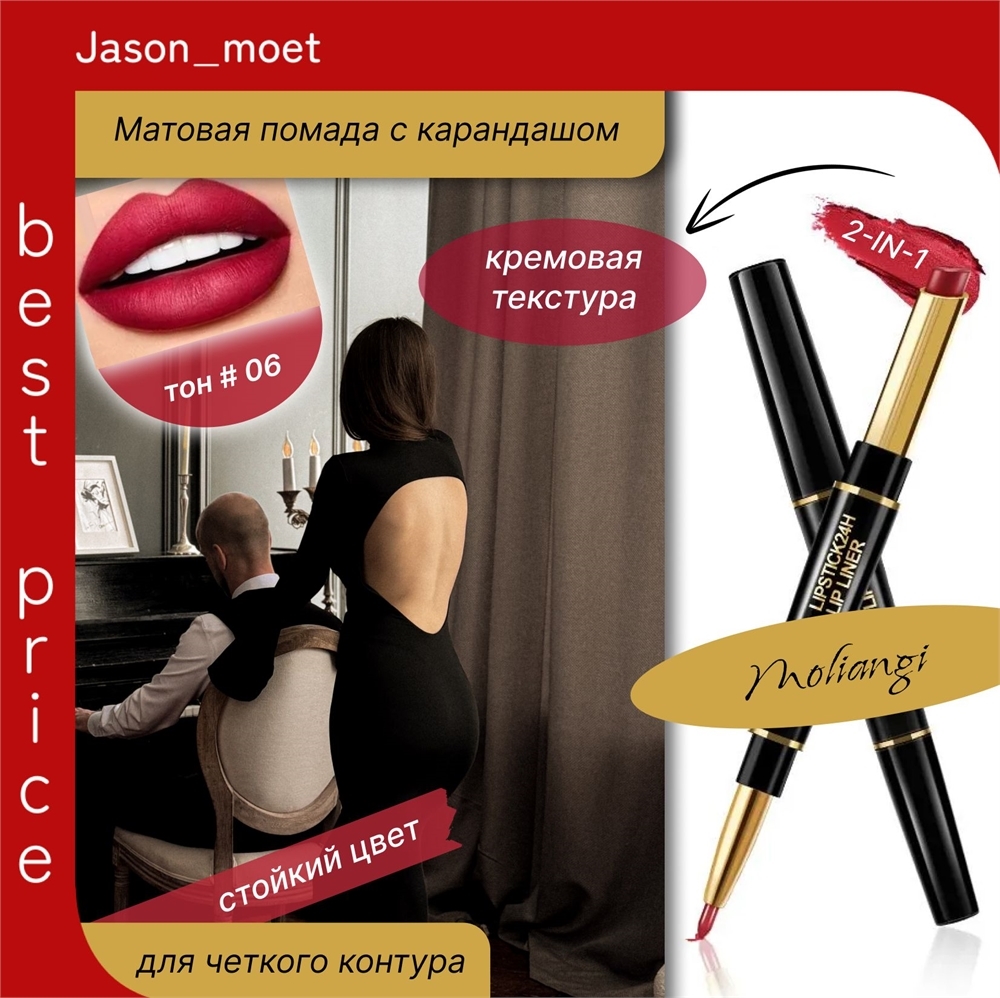 Molianji матовая помада для губ с карандашом для контура 2-IN-1 тон 06