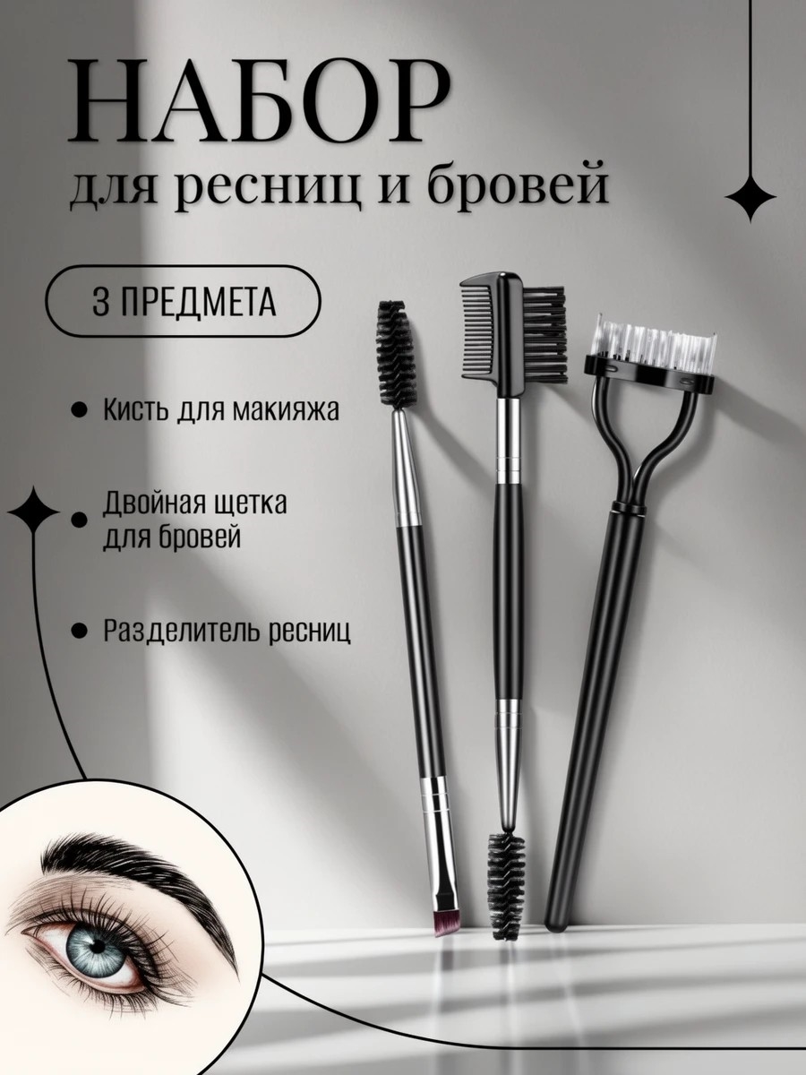 Состав набораДвойная щетка для бровей, Кисть для макияжа и бровей, Разделитель ресниц