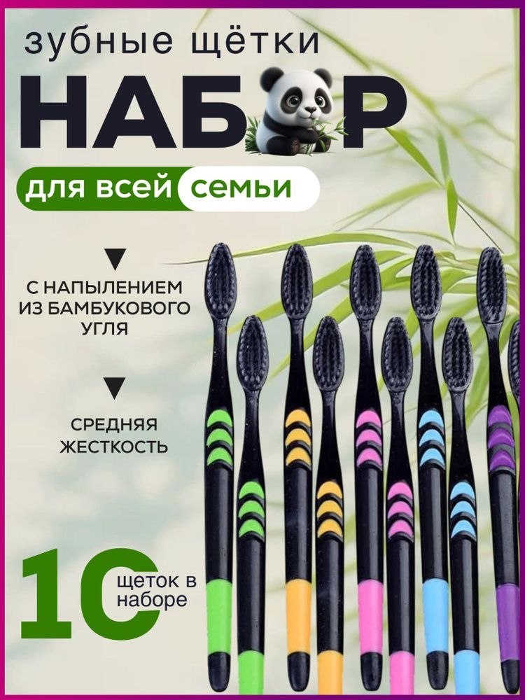 Набор мягких зубных щеток 10 штук с бамбуковым углем