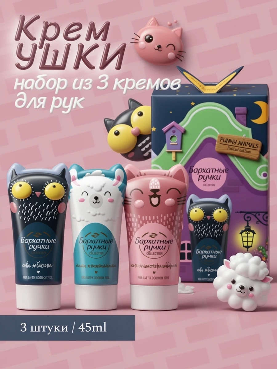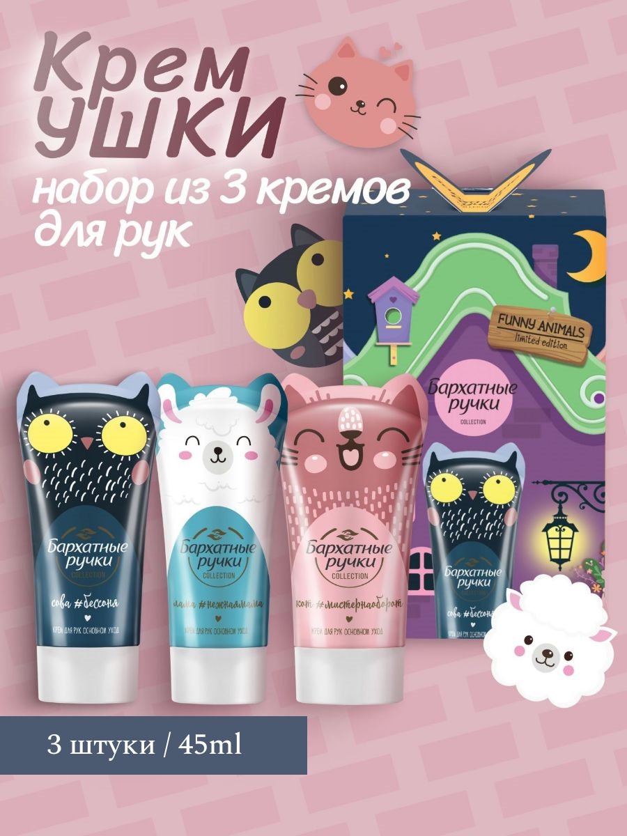 Подарочный набор Бархатные Ручки Коллекция с ушастыми героями, увлажняющие кремы для рук Основной уход, 3х45 мл