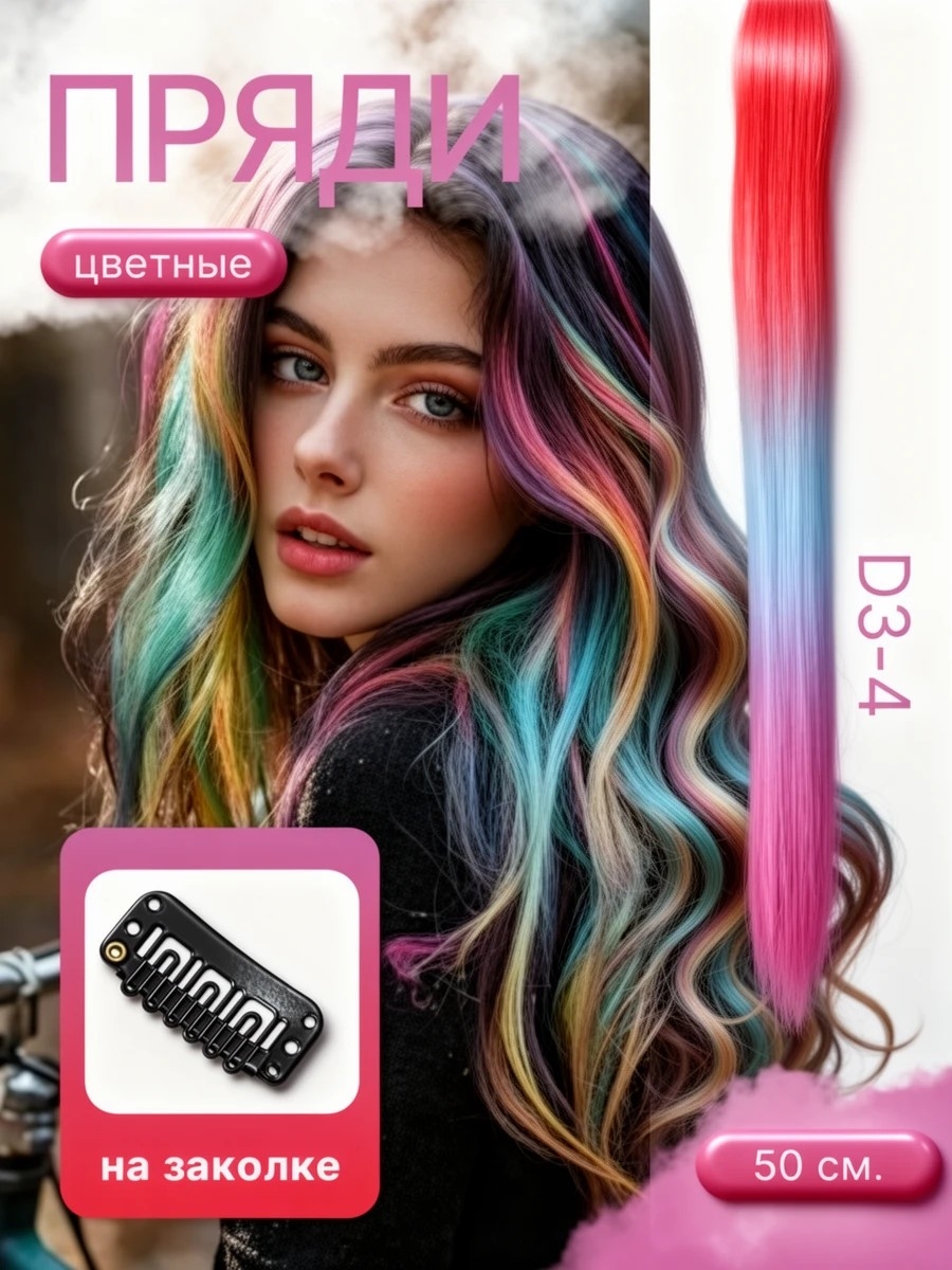 Пряди с волосами на заколке для наращивания волос, стильный аксессуар для создания прически 50 см. D3-4