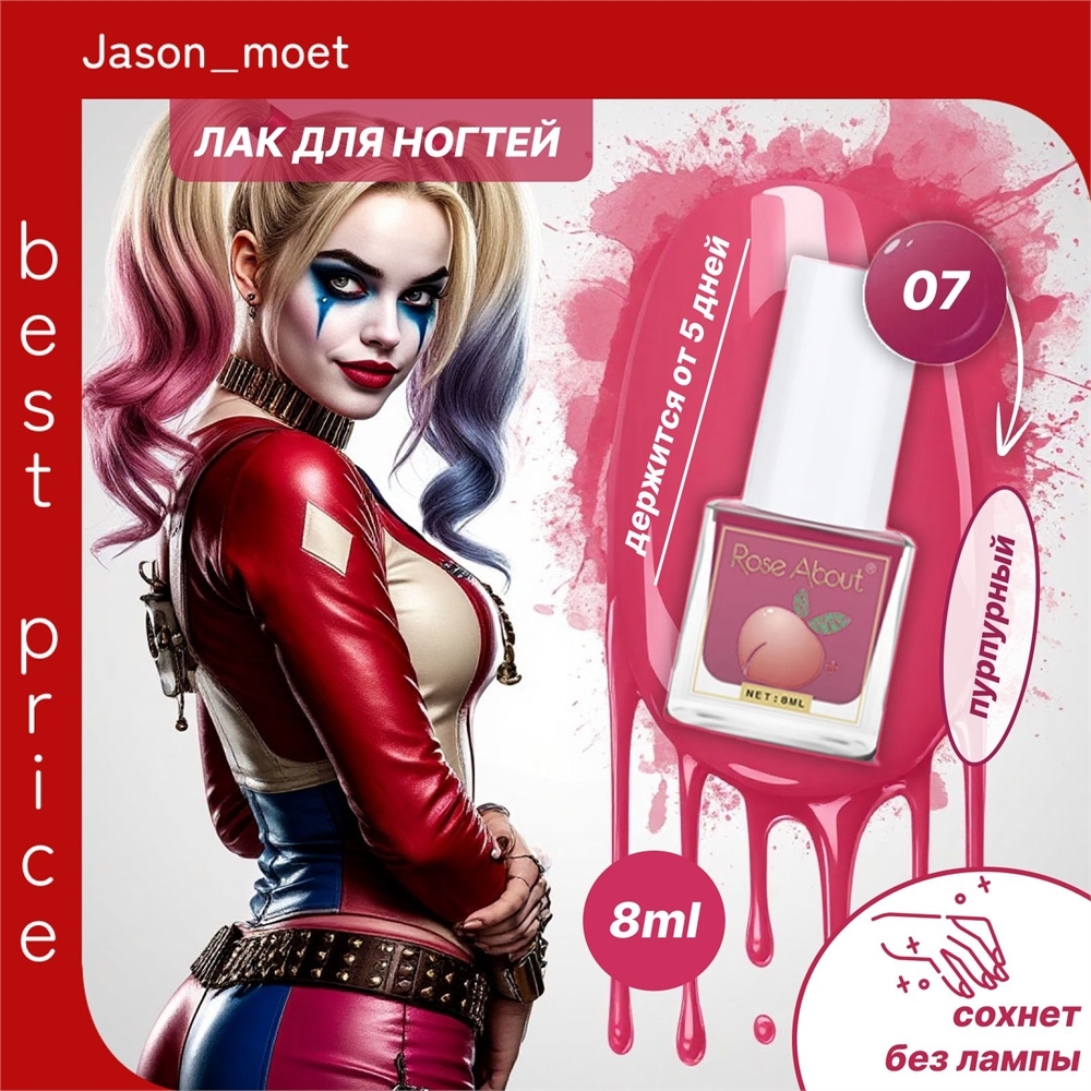 Rose About лак для ногтей на водной основе 8 мл. тон # 07 пурпурный