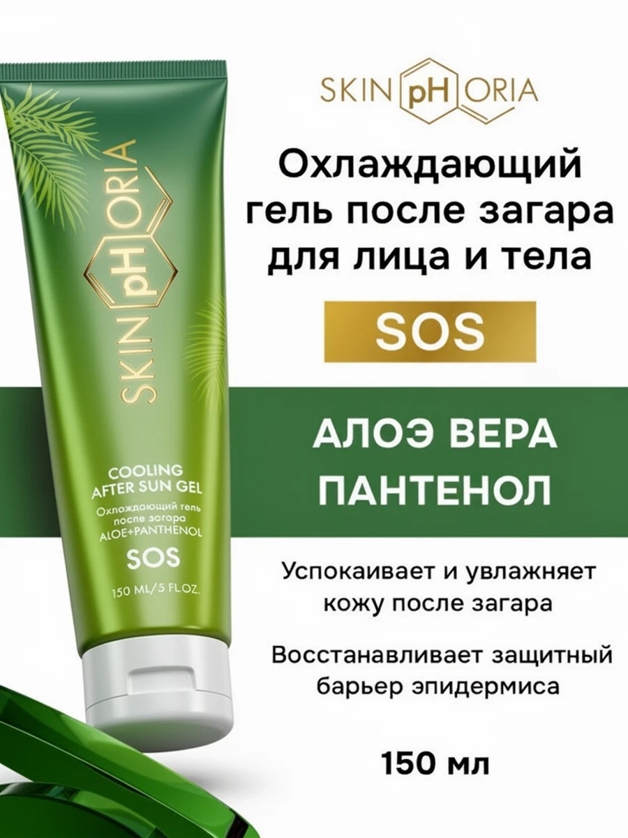 Скинфория охлаждающий гель крем после загара с пантенолом и алоэ для тела 150мл. Skinphoria