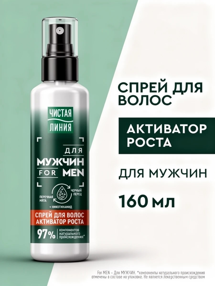 Спрей для волос мужской для роста волос Чистая Линия с перечной мятой, никотинамидом, экстрактом черного перца 160 мл