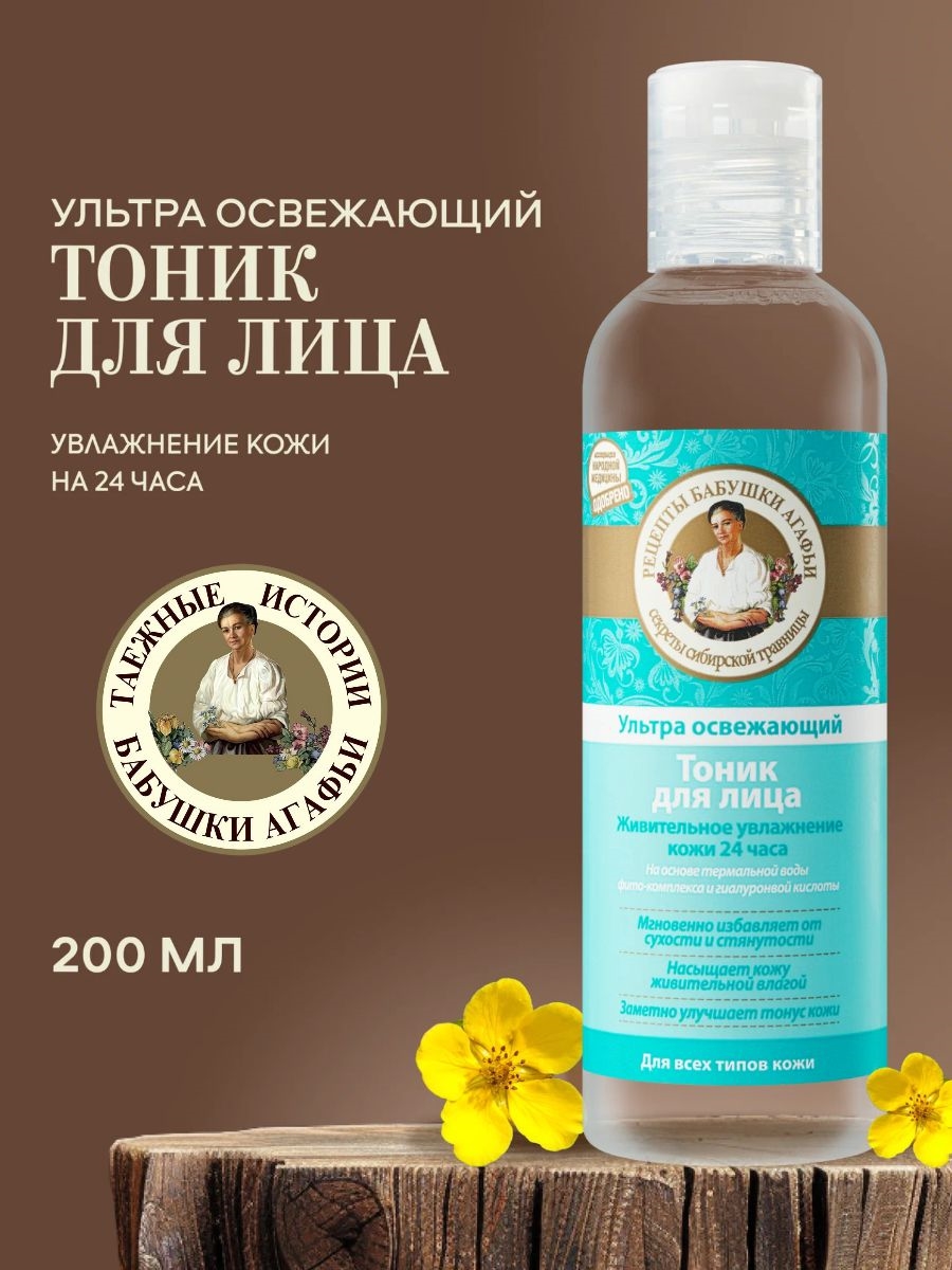 Тоник Рецепты бабушки Агафьи Живительное увлажнение кожи 24 часа для лица, 200 мл