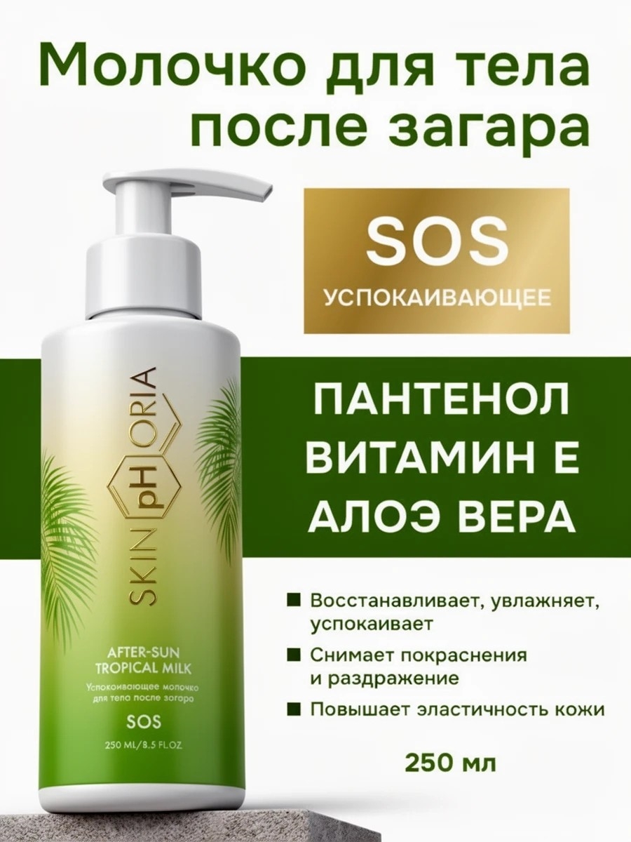 Успокаивающее молочко крем после загара для тела After-sun Tropical Milk, Скинфория, 250 мл. Skinphoria